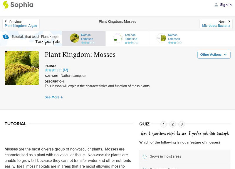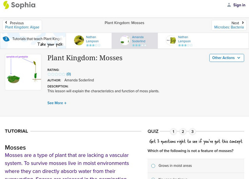 Sophia: Plant Kingdom: Mosses: Lesson 3