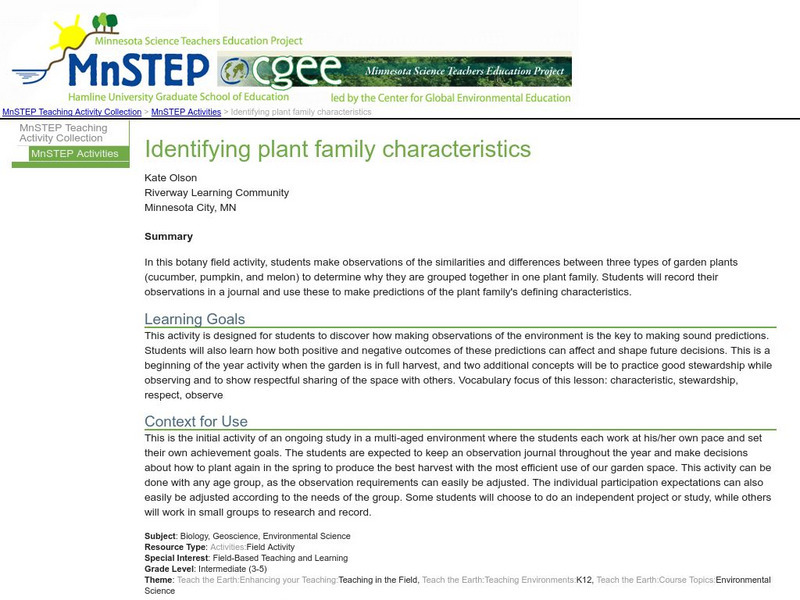 Serc: Identifying Plant Family Characteristics