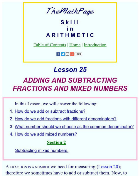 The Math Page: Skill in Arithmetic: Add and Subtract Fractions