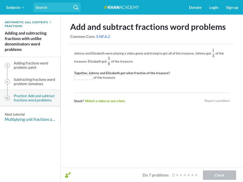 Khan Academy: Add and Subtract Fractions: Word Problems 1