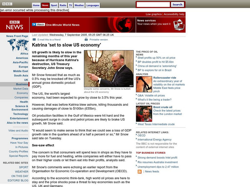 Bbc: Katrina 'Set to Slow Us Economy'