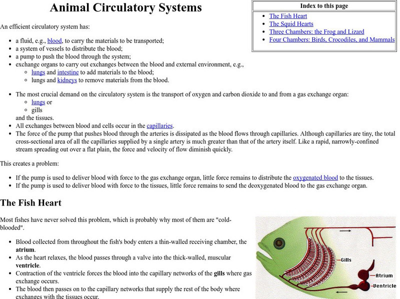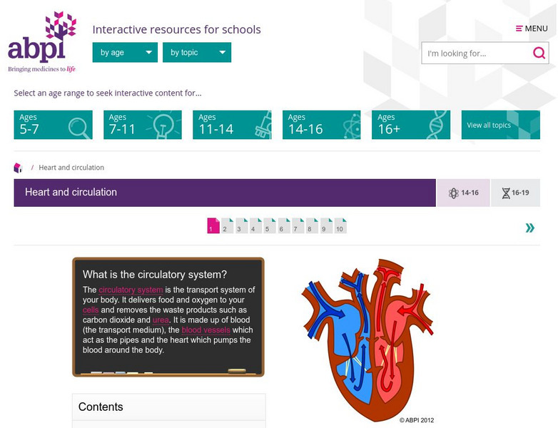 Educational site provides an overview of the heart and circulation. Included, are six sections and a quiz.