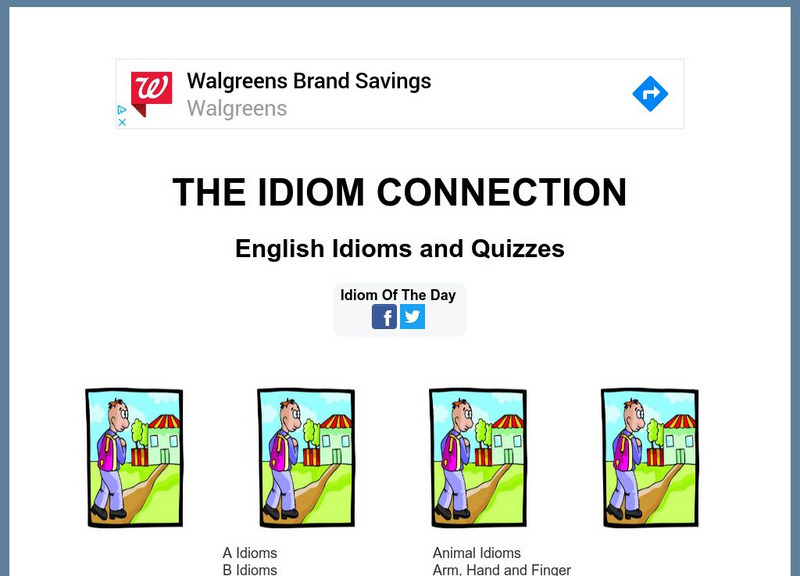 Users can search this list of idioms and their explanations either alphabetically or by subject matter, such as Food Idioms, Business Idioms, or Animal Idioms. There are also quizzes on each category of idiom so students can test their...