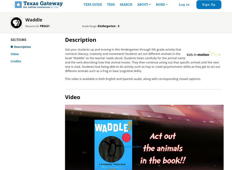 This activity connects literacy, creativity and movement. Students act out different animals in the book "Waddle" as the teacher reads aloud. When the animal name and the verb describing how that animal is read, students move like the...