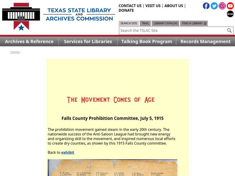 Texas State Library and Archives Commission: The Movement Comes of Age: Falls County Prohibition Committee, July 5, 1915