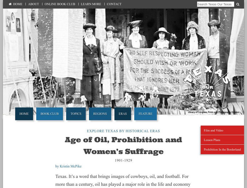 Texas Pbs: Texas Our Texas: Age of Oil, Prohibition, Women's Suffrage 1901 1929