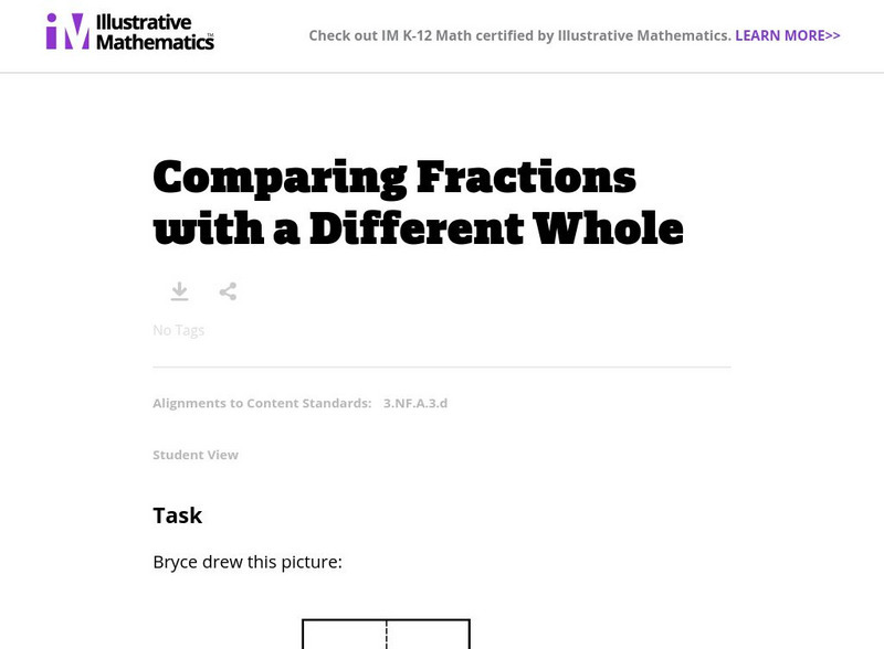 Illustrative Mathematics: 3.nf Comparing Fractions With a Different Whole
