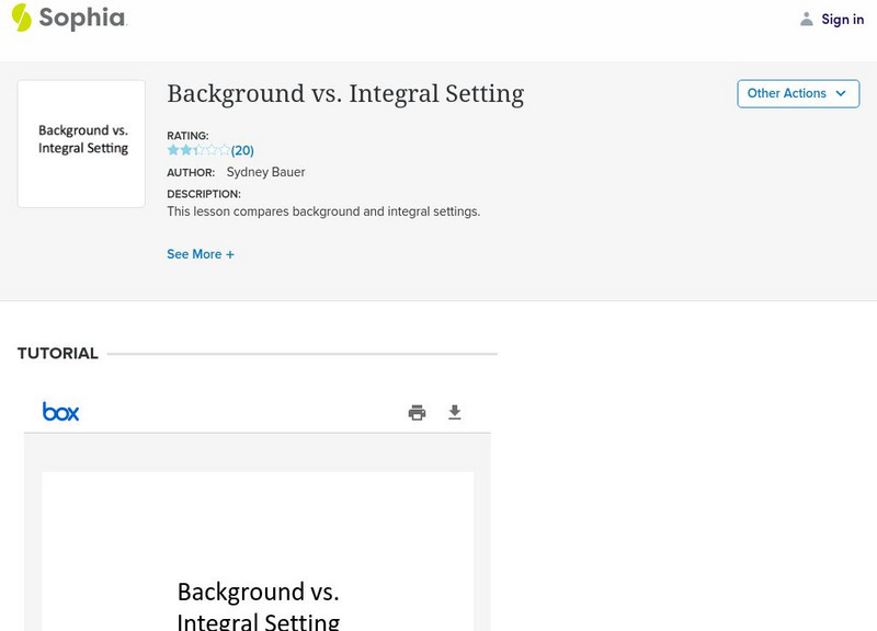 This lesson compares background (settings that do not affect the story) and integral settings (the story depends on the setting to make sense).