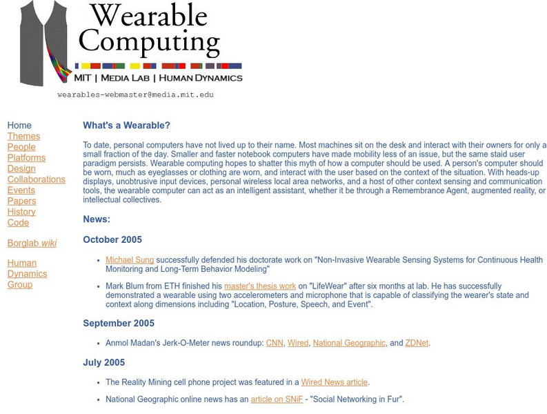 Take an academic look at wearable computing with this site from MIT. Check out the research currently going on at the institution, including "fashion shows" of various devices. Also contains "A Brief History of Wearable Computing Timeline".
