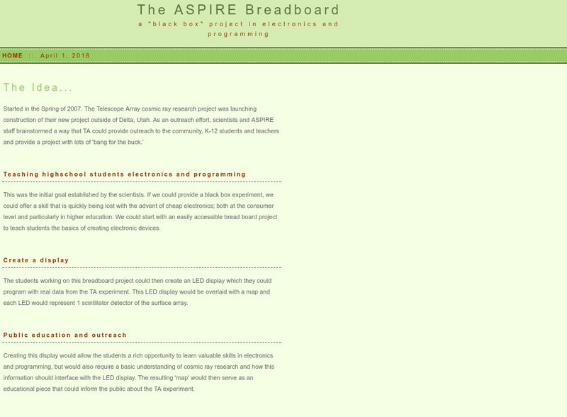 This is a tutorial for creating a breadboard with an LED display as an educational outreach effort for the Telescope Array cosmic ray research project near Delta, Utah. When completed, the breadboard could be programmed to use actual...