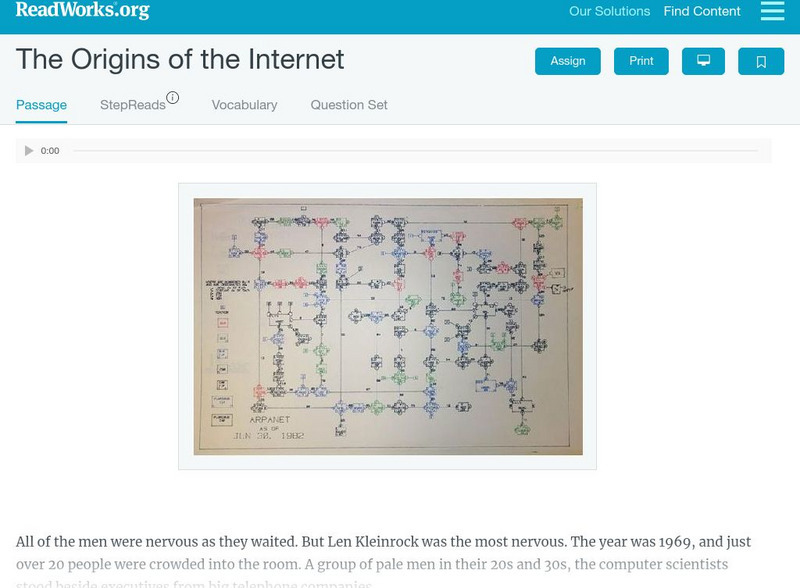 [Free Registration/Login Required] An informational text about the start of the Internet. A question sheet is available to help students build skills in reading comprehension.