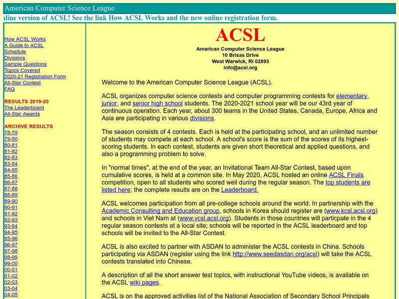The primary site for the American Computer Science League (ACSL) programming competition.