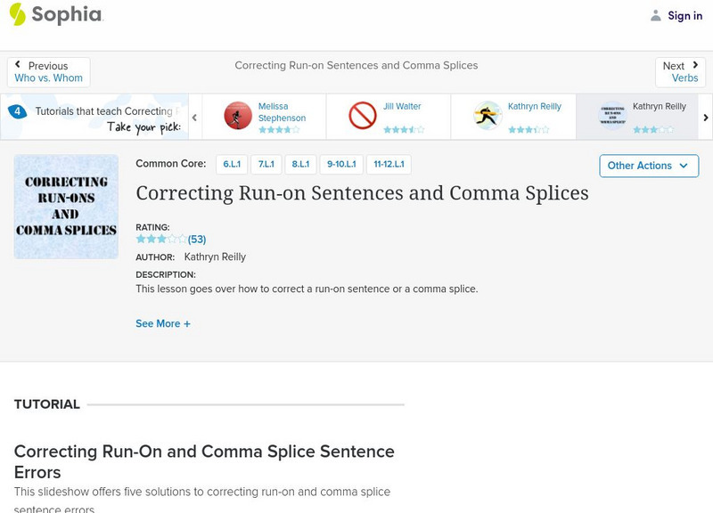 A learning module that teaches students about varying sentence structure in six mini-lessons: Introduction; What Is a Sentence?; Simple Sentences; Readability: How Foggy Is Your Writing?; Compound, Complex, Compound-Complex, and The Art...
