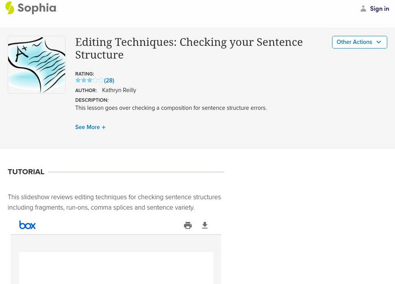 Sophia: Editing Techniques: Checking Your Sentence Structure