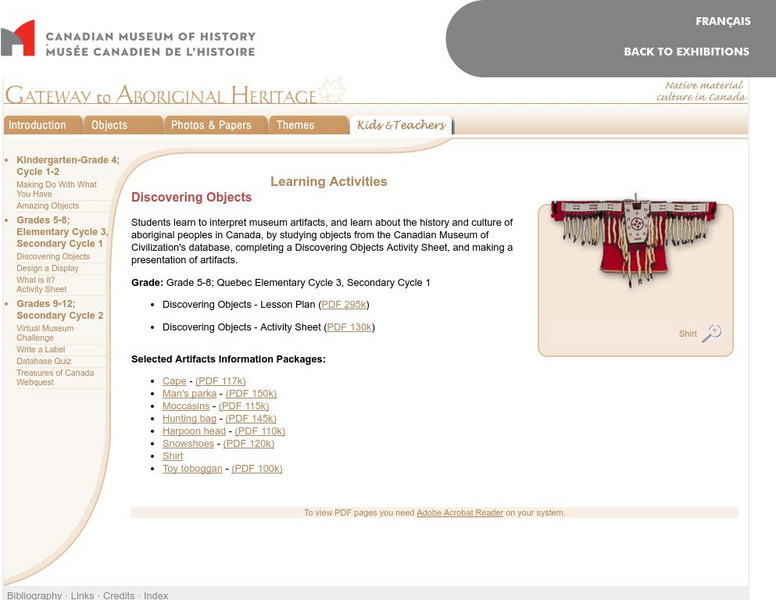 A teacher lesson plan, student activity sheet and artifact information packages provide students with the opportunity to interpret items before presenting their hypothesis to the class.
