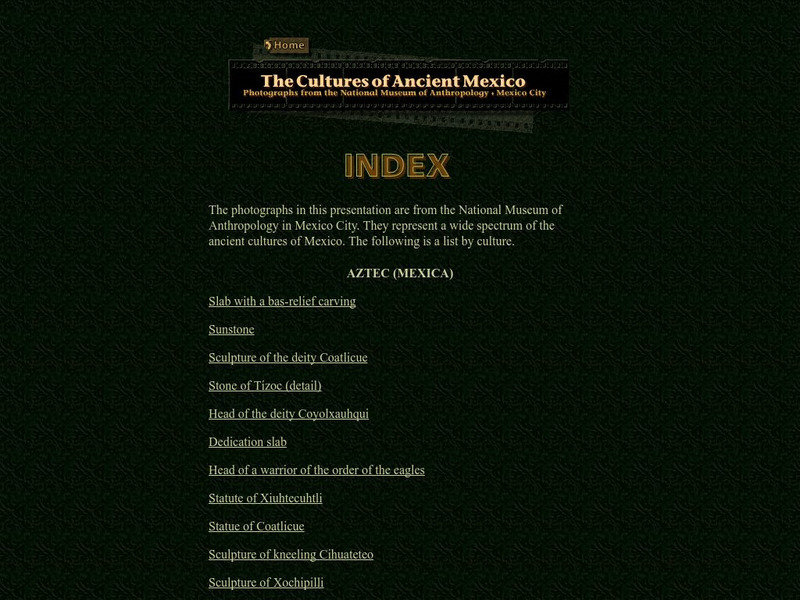 This website contains over 100 images of Mesoamerican art categorized by culture. Includes brief explanations of each item.