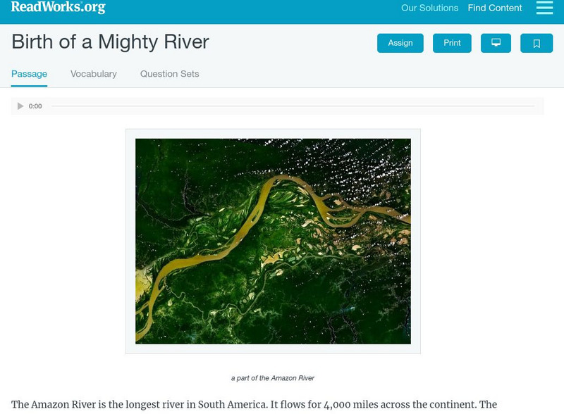 [Free Registration/Login Required] Students read about the Amazon River and its origins. A question sheet is available to help students build skills in drawing conclusions.