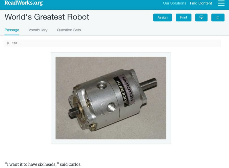 [Free Registration/Login Required] A literary text about brothers who work together to plan the perfect robot. A question sheet is available to help students build skills in reading comprehension.
