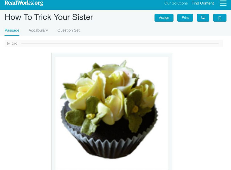 [Free Registration/Login Required] A literary text about a brother who learns that it is more fun to trick people than it is to be tricked. A question sheet is available to help students build skills in reading comprehension.