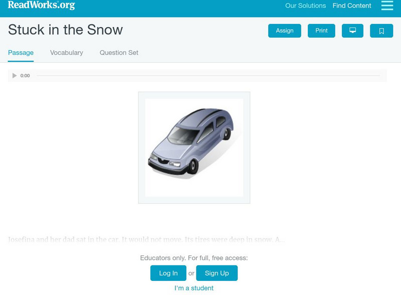 [Free Registration/Login Required] A literary text about a little girl and her father when their car gets stuck in the snow. A question sheet is available to help students build skills in reading comprehension.
