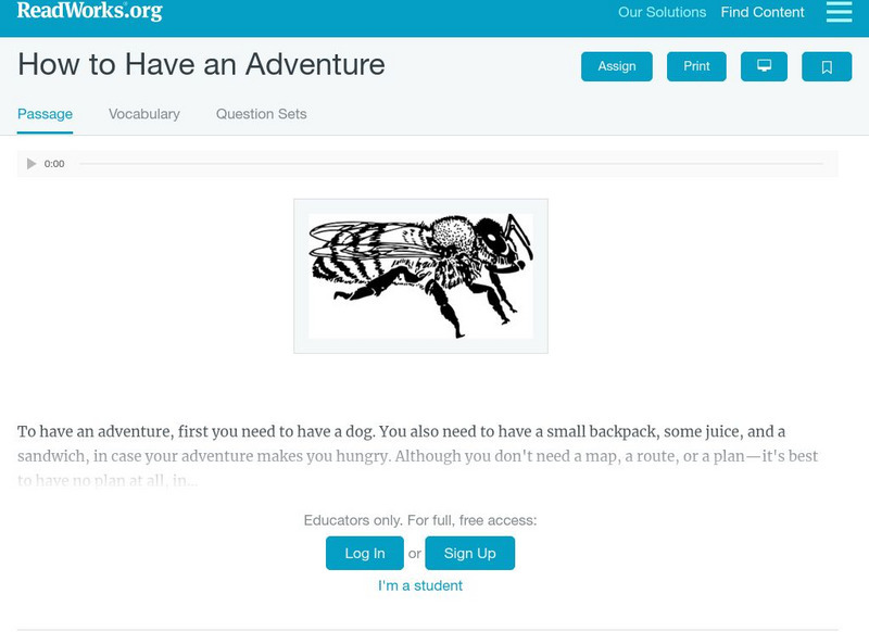 [Free Registration/Login Required] A literary text about a boy named Kurt and his adventure with bees. A question sheet is available to help students build skills in reading comprehension.