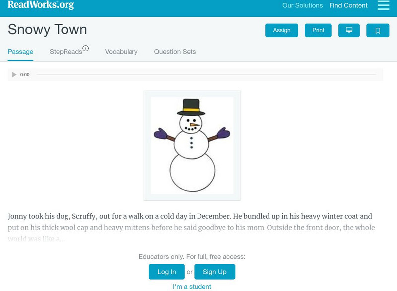 [Free Registration/Login Required] A literary text about a boy named Johnny who takes his dog for a walk on a snowy day. A question sheet is available to help students build skills in reading comprehension.