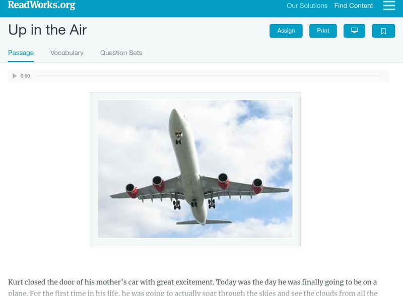 [Free Registration/Login Required] A literary text about a boy named Kurt and his first trip on an airplane. A question sheet is available to help students build skills in reading comprehension.