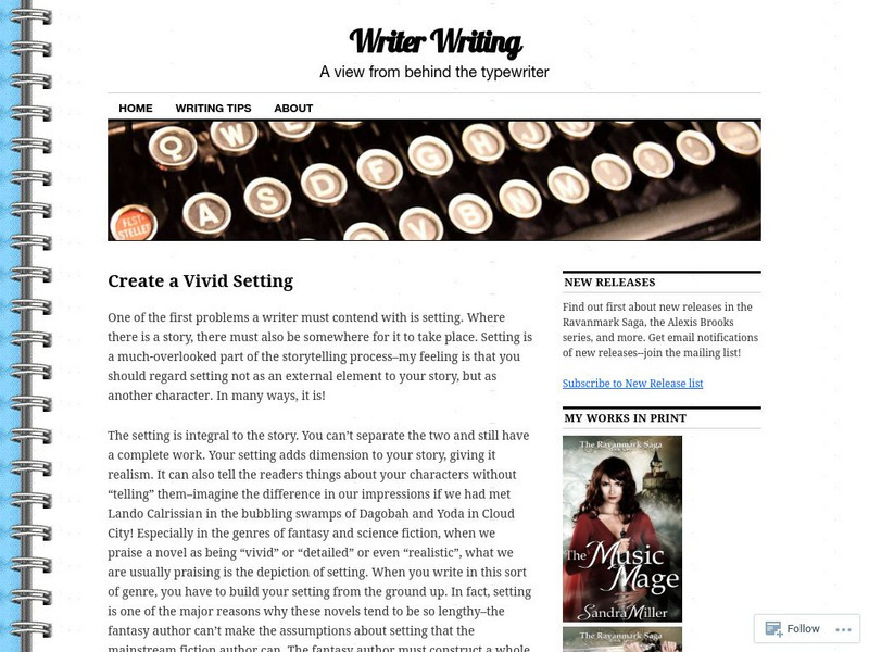 Some excellent guidelines to consider when evaluating your setting in a short story or novel. Discusses the importance of setting, some examples, as well as practical advice in setting your story. W.11-12.3d Sensory/precise lang narratives