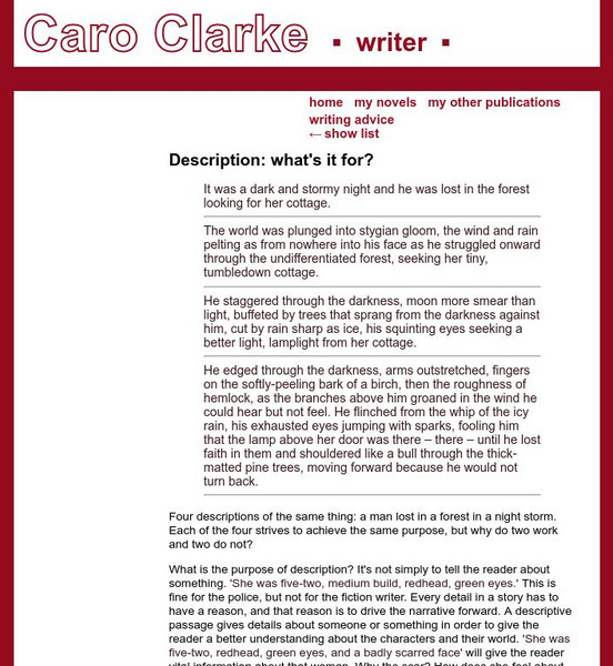 This is the twelfth article in a series that is designed to help the new novel writer. This article focuses on how to effectively use descriptions in any writing.