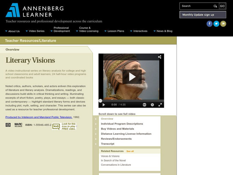 A series of 24 instructional videos, each about 30 minutes in length, designed to teach literary analysis. Topics include Responding to Literature, The Elements of Short Fiction, Tone and Style in Short fiction, The Elements of Poetry,...