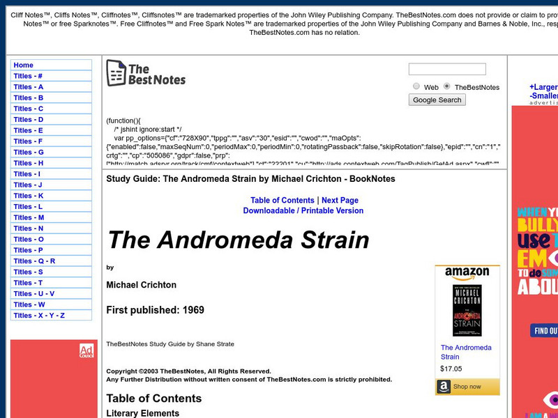 The Best Notes: The Andromeda Strain by Michael Crichton