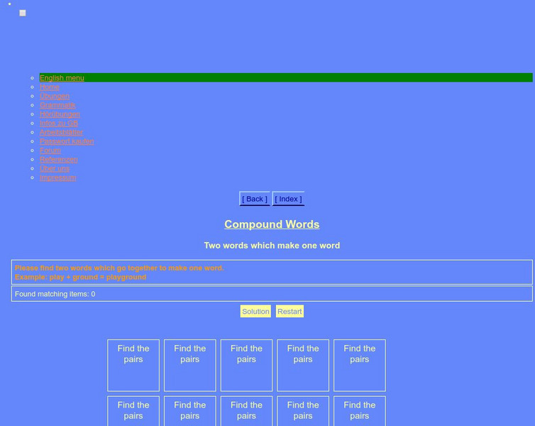 This is a self-scoring matching game in which pairs of words are matched to form compound words.