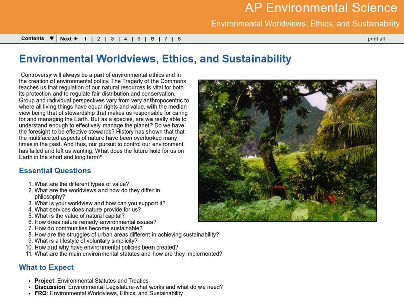 Ga Virtual Learning: Environmental Worldviews, Ethics, and Sustainability