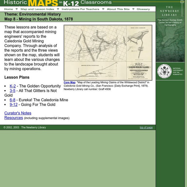 Lessons for K-12 based on a series of maps teaches students about the environmental changes resulting from mining in South Dakota, 1878.