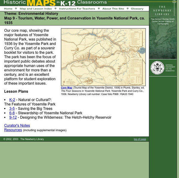 Lessons for students K-12 in which they study original map of Yosemite National Park, ca. 1935 and explore appropriate human uses of the environment.