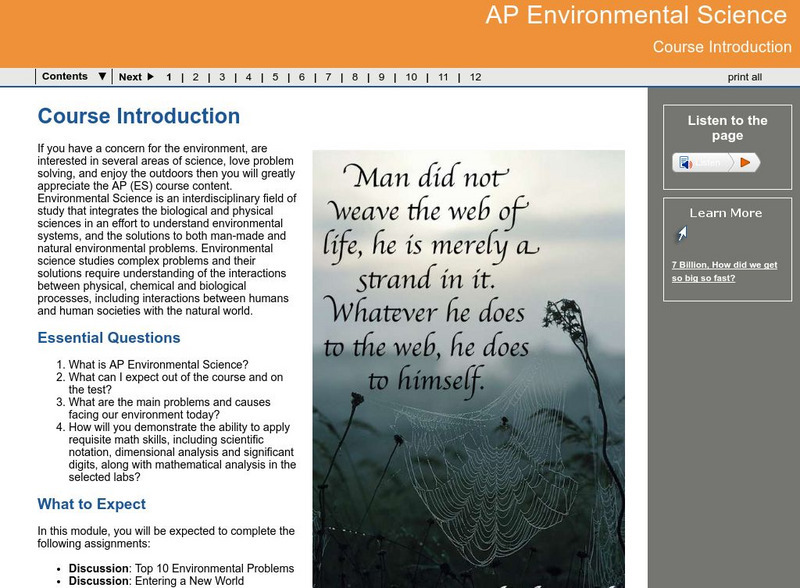 Ga Virtual Learning: Ap Environmental Science: Course Introduction