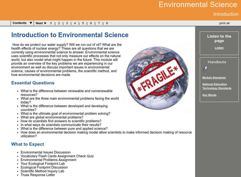 With this collection of video tutorials and student assignments, students learn about the interdisciplinary science that focuses primarily on solving environmental problems.