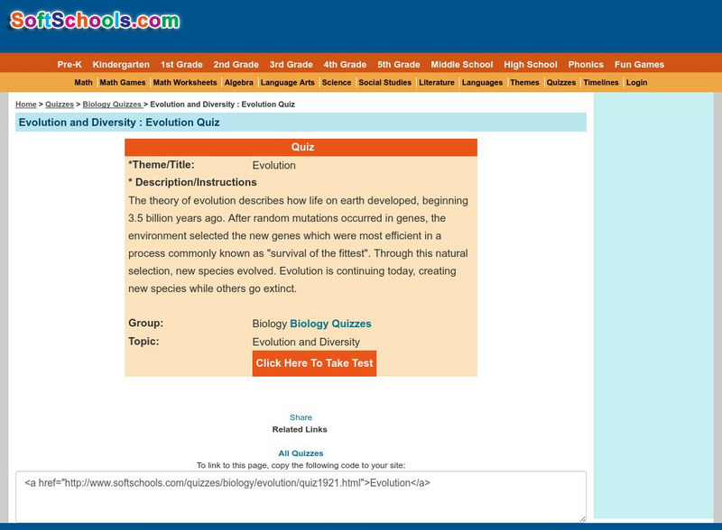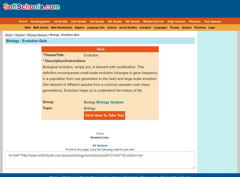 Take this interactive, multiple-choice quiz over evolution, then review your score and any missed questions at the end.