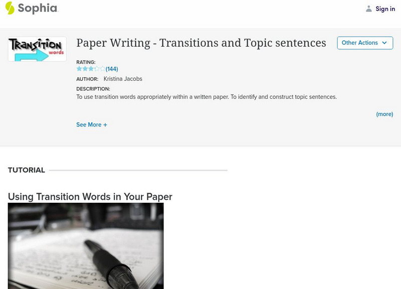 Sophia: Paper Writing: Transitions and Topic Sentences