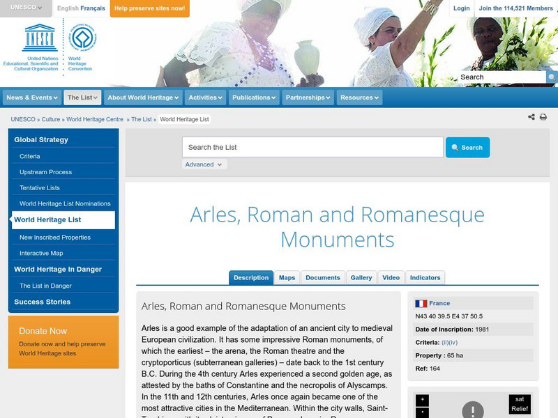 This site from the United Nations Educational, Scientific and Cultural Organization provides a brief description of why Arles is a World Cultural Heritage site, with a photo. This is a brief, but factual site on the subject.