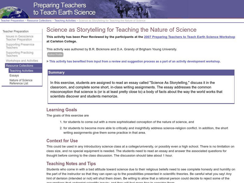 Serc: Science as Storytelling for Teaching the Nature of Science