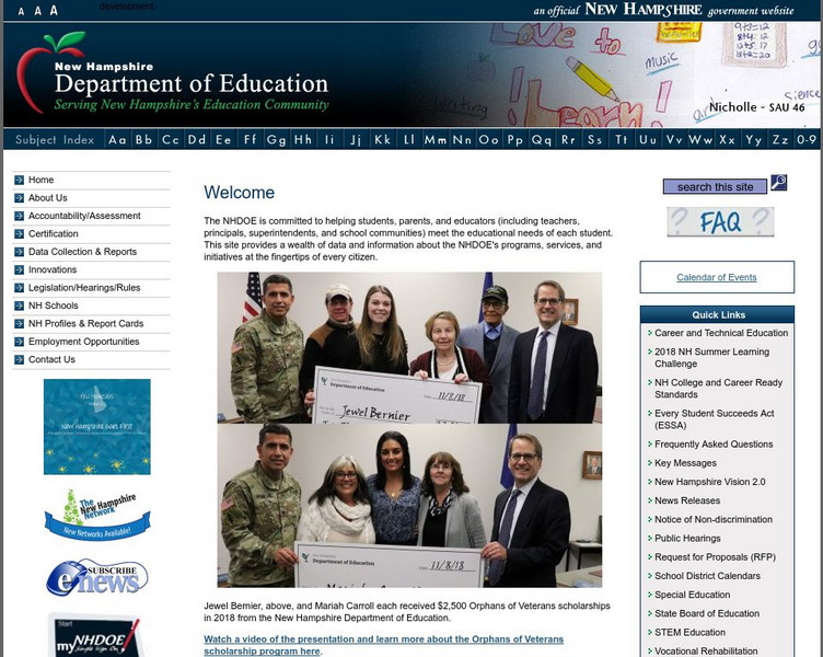This site provides easy access to information about the department itself and the educational programs it promotes throughout the state of New Hampshire. It also provides additional links to such sites as the "Family Resource...