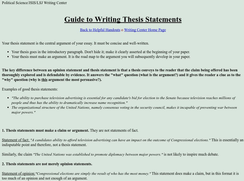 These guidelines show how to write effective thesis statements with examples of effective and ineffective statements.