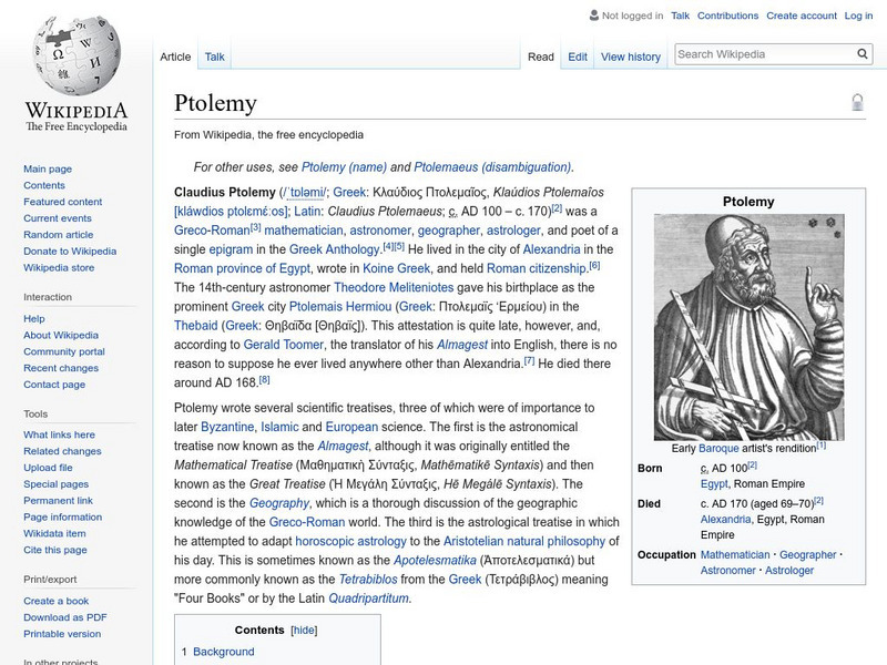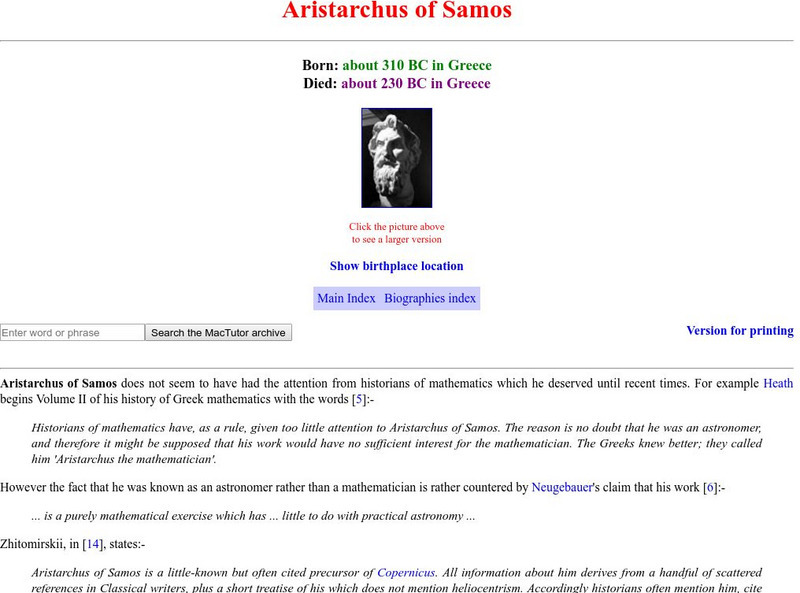 This site, which is provided for by the University of St. Andrews, gives a biography of the Greek astronomer and mathematician who supported the theory of geocentricism.