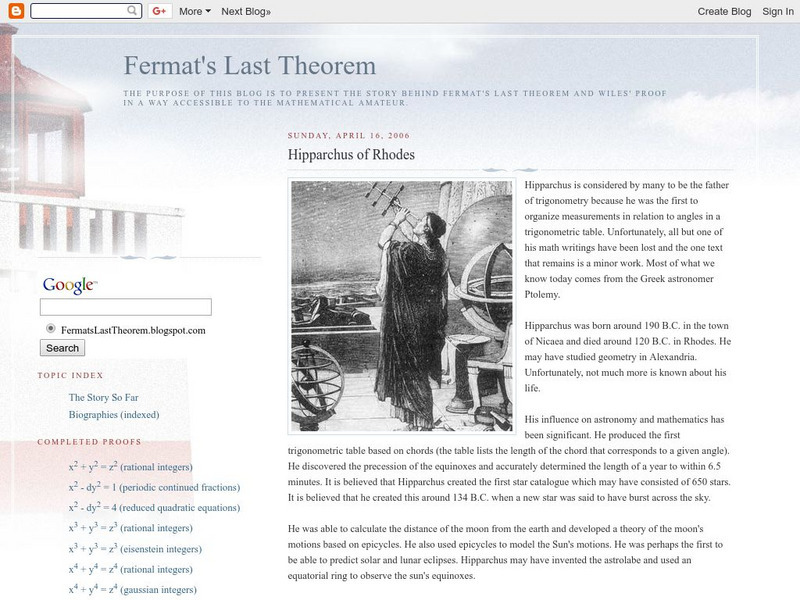 Fermat's Last Theorem Blog: Hipparchus of Rhodes