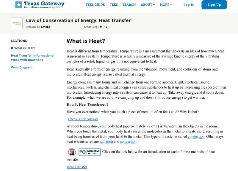 Texas Gateway: Law of Conservation of Energy: Heat Transfer