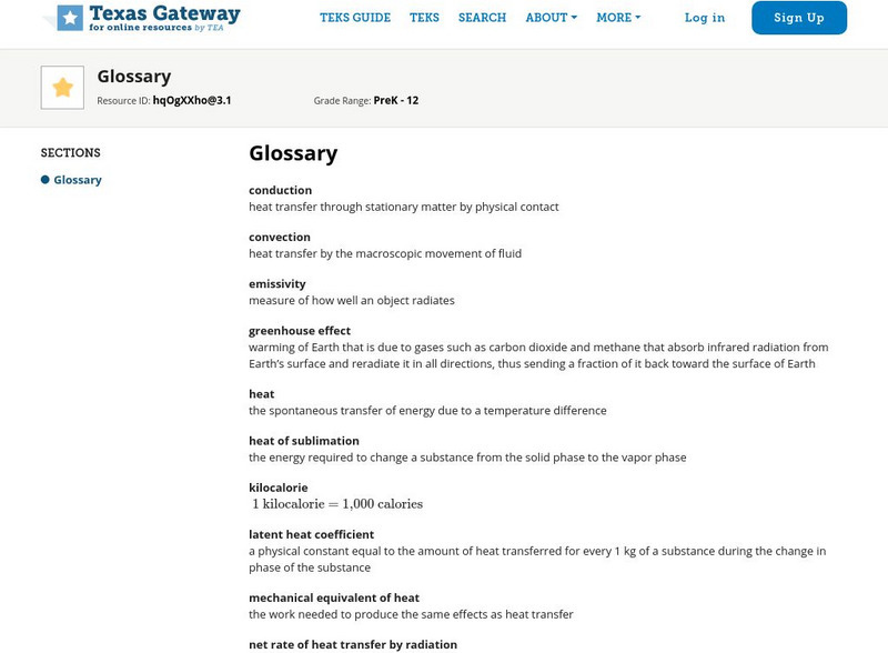 Texas Gateway: Heat and Heat Transfer Methods: Glossary