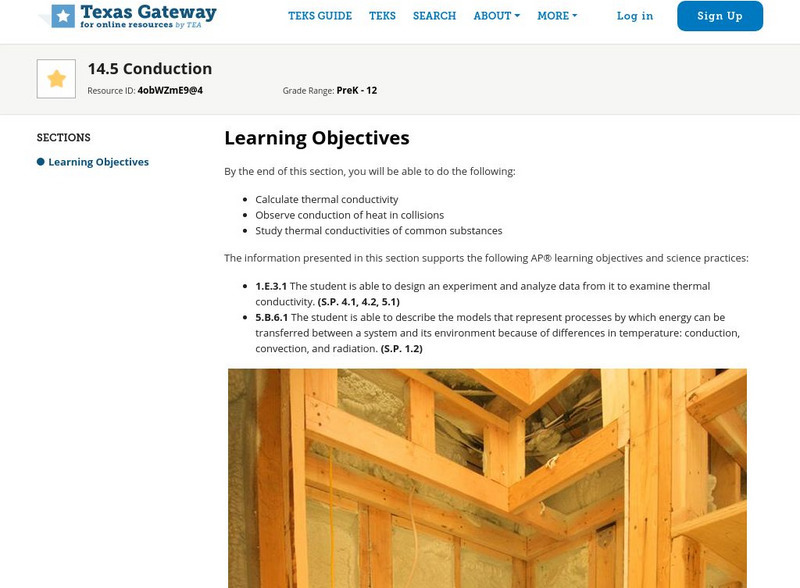 Texas Gateway: Heat and Heat Transfer Methods: Conduction