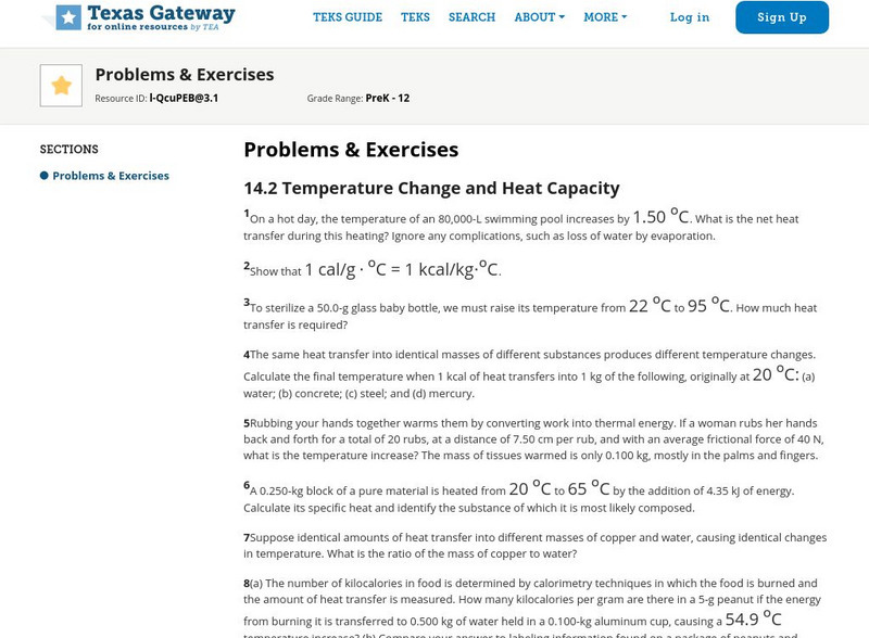 Texas Gateway: Heat and Heat Transfer Methods: Problems & Exercises