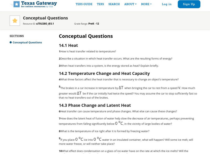 Texas Gateway: Heat and Heat Transfer Methods: Conceptual Questions